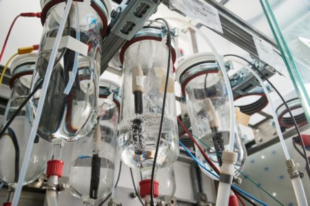 Das Team nahm Polybutylensuccinat (PBS), das sich aus nachwachsenden Rohstoffen gewinnen lässt, als Grundmaterial. Es ist ein Polyester, das heutzutage in verschiedenen Qualitäten und vor allem größeren Mengen am Markt zu haben ist. Seine biologische Abbaubarkeit hat es bereits mehrfach unter Beweis gestellt. Ein Vorteil: PBS lässt sich thermoplastisch verarbeiten, sowohl als Fasermaterial für das Trägergewebe als auch für die Beschichtung. Die thermoplastischen Eigenschaften begünstigen zudem das spätere Recycling.