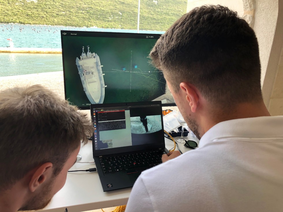 Das Team des SeaClear-Projekts beobachtet den Unterwasserroboter per Kamera. Foto: The SeaClear Project