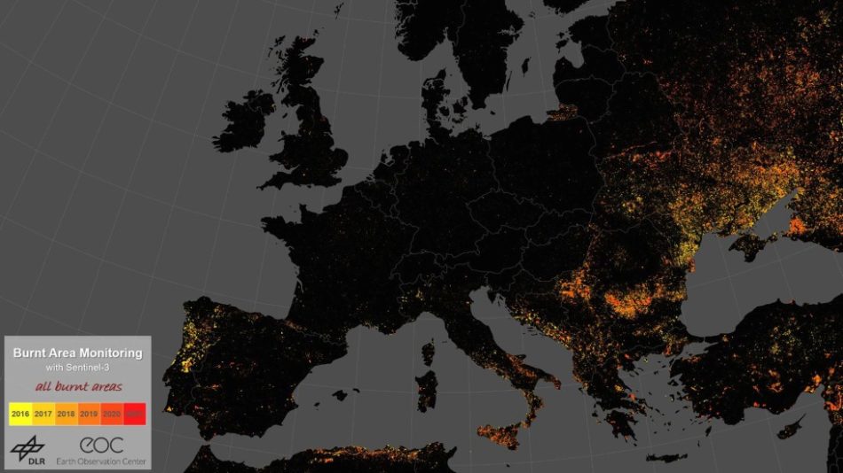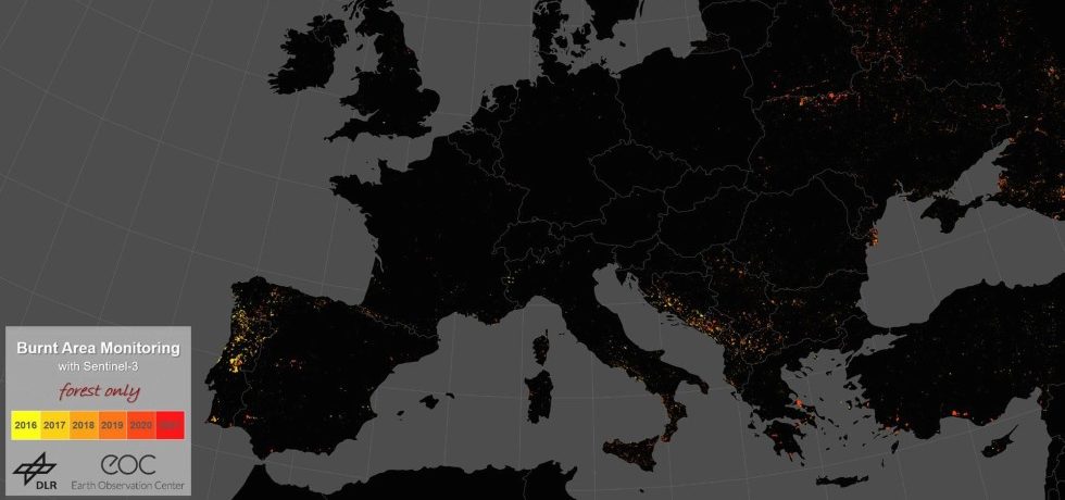 Mehrere Satelliten liefern Daten für die Dokumentation der Feuer in Europa