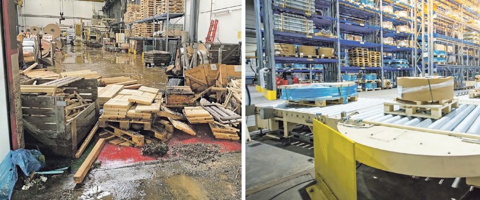 „Wir habe jetzt rund 95 % der Maschinenkapazität wiederhergestellt“, erzählt David Schlenter. Auch hier bremsten Lieferengpässe bei Schaltelementen die Reparaturarbeiten immer wieder aus. Hinzu kamen versteckte Mängel in Maschinen und Anlagen, die sich erst nach und nach zeigten. Einige Maschinen seien nach den Flutschäden etwas störungsanfälliger. Aber Schlenter ist sich sicher: „Das wächst sich langsam raus.“