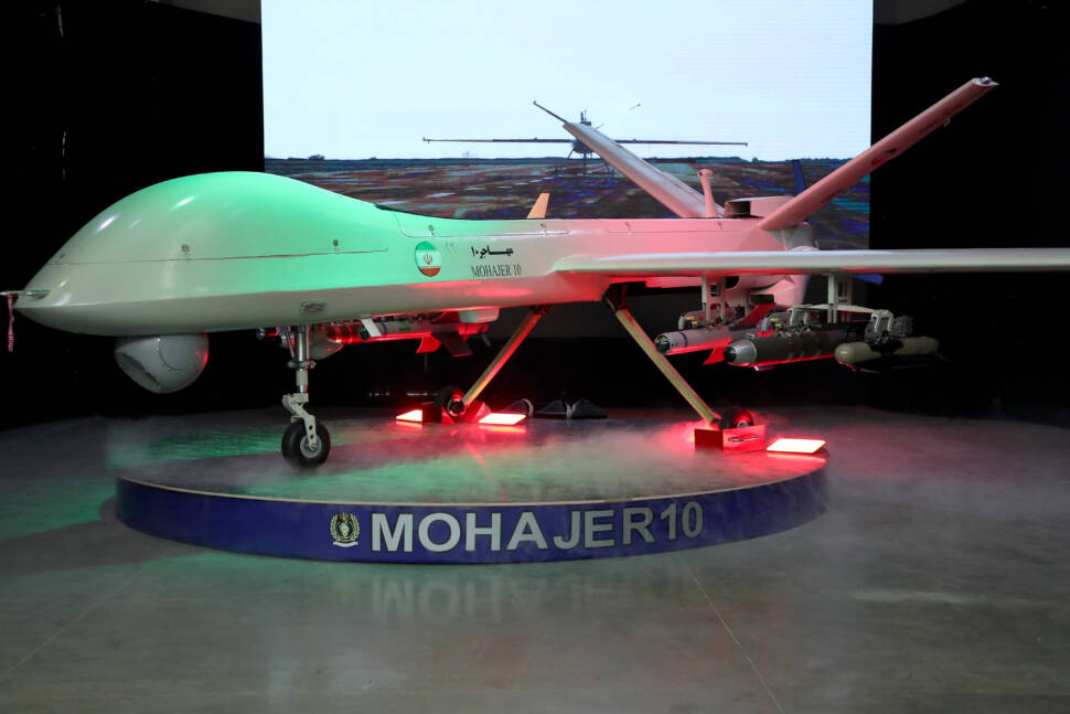 Die Drohne Mohajer 10 kann mit ihrer großen Reichweite Israel bombardieren. Nun wurde sie in Russland vorgestellt.