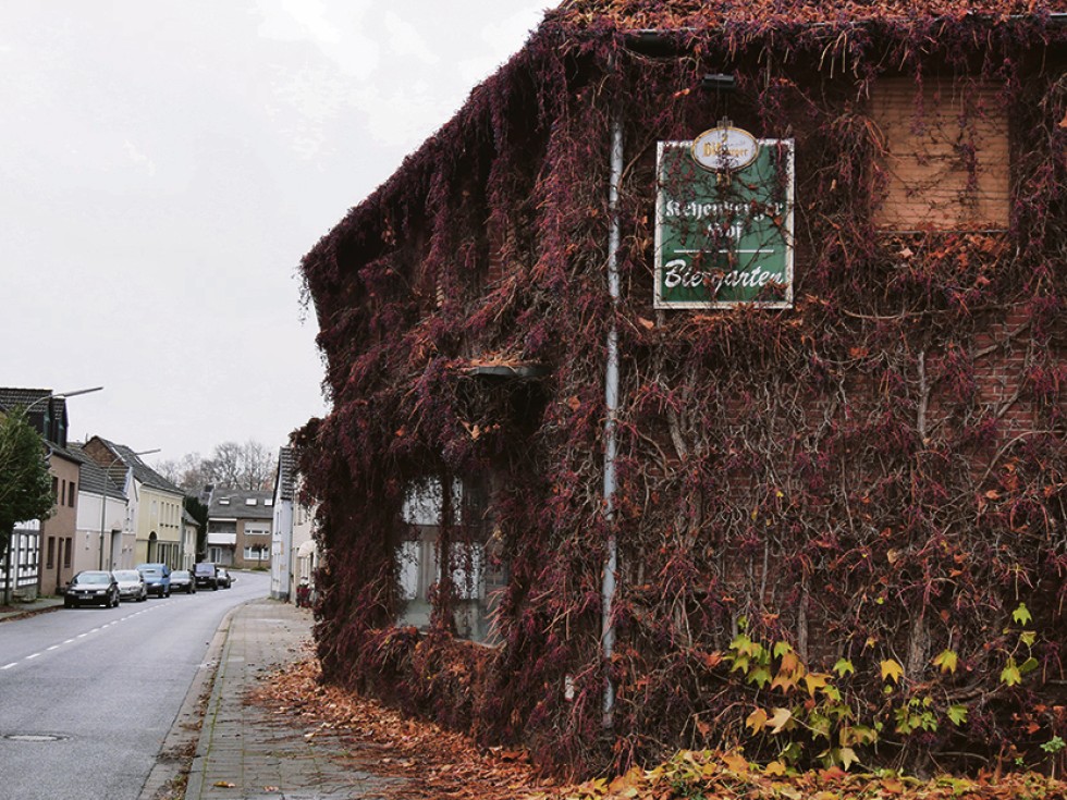 Beim Gang durch die vermeintlich „geretteten“ Orte stellt sich Beklemmung ein. Hier wuchert das Gras aus der Dachrinne, da liegen zerschellte Dachziegel auf der Terrasse. Zum Symbol, dass das Leben hier erstarrt ist, geht die Kirchturmuhr deutlich nach. Der „Keyenberger Hof“, einst Ort der Geselligkeit und des Dorflebens, verschwindet hinter herbstbraunen Weinranken.