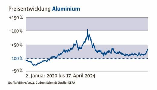 Die Preise der Industriemetalle wie Aluminium, Blei, Kupfer, Nickel, Zink und Zinn sind seit Jahresbeginn wieder deutlich gestiegen. Nach den Rekordständen im Frühjahr 2022 fielen die Metallpreise bis zum Jahresende deutlich. Im vergangenen Jahr bewegten sich die Preise unter einer gewissen Schwankung größtenteils seitwärts, ausgenommen Nickel und Zink, deren Preise im Jahr 2023 auch weiterhin fielen.